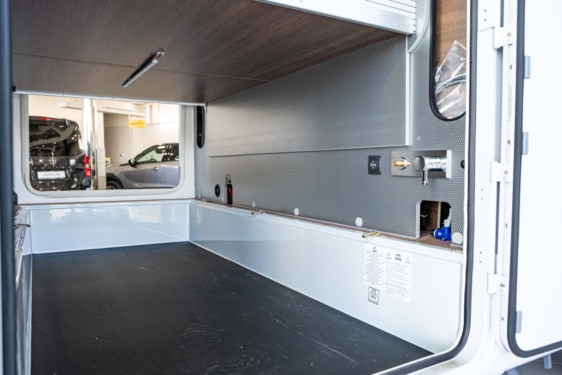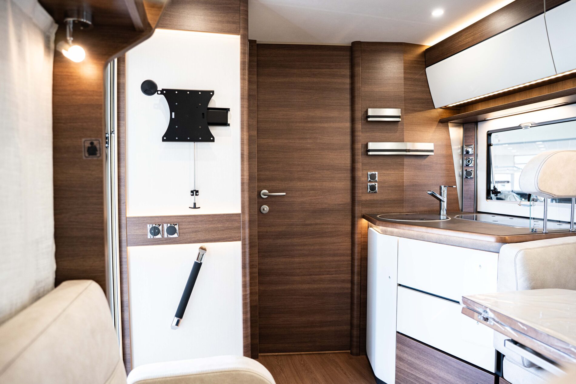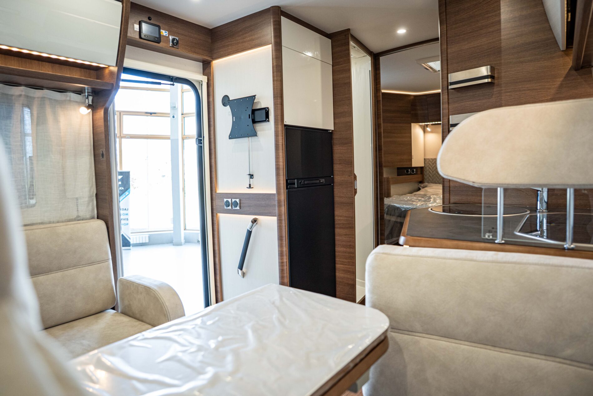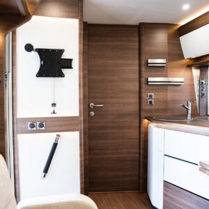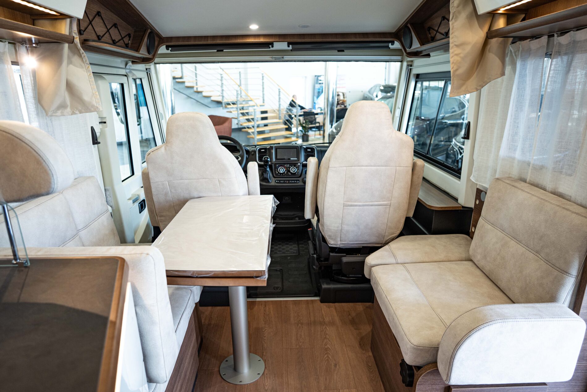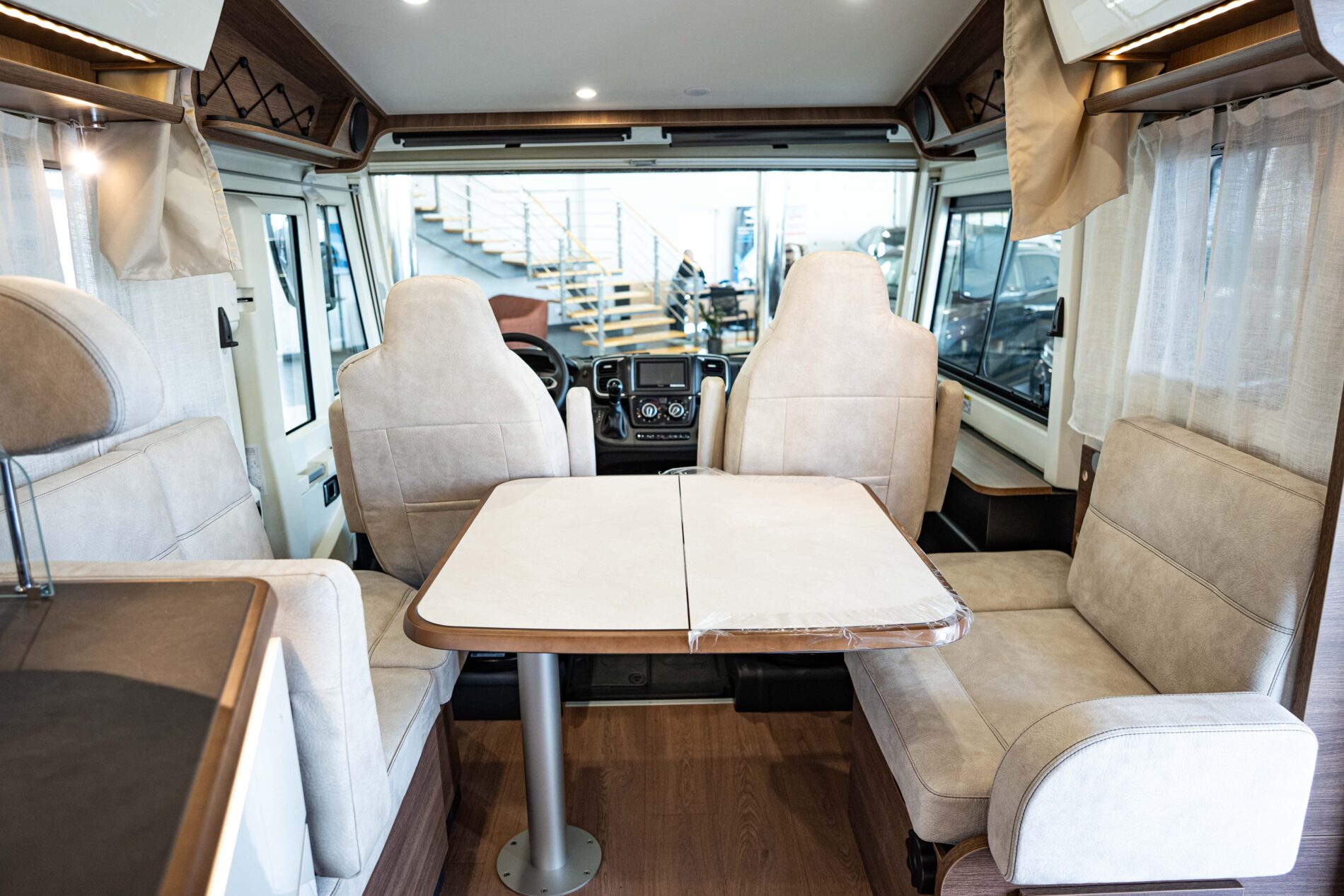 Súčasťou interiérovej výbavy je nábytkový dekor Palatina, čalúnenie Alba a luxusný rozkladací stôl. Vozidlo je pripravené na okamžité používanie.